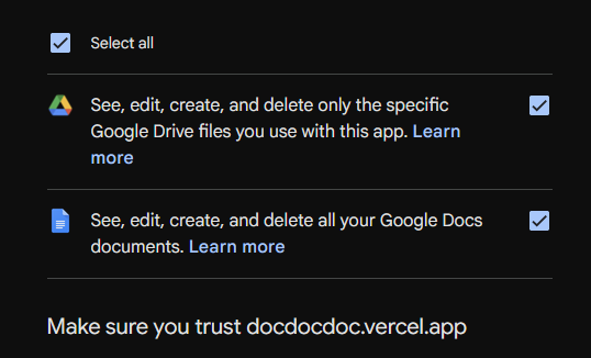 DocDocDoc currently requests exactly these scopes: